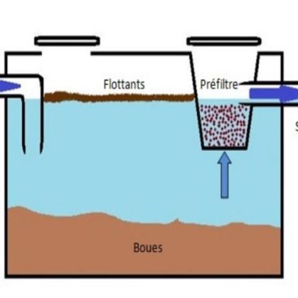Elle reçoit toutes les eaux domestiques — toilettes, cuisine, salle de bain — et assure leur prétraitement avant qu’elles ne rejoignent le sol.